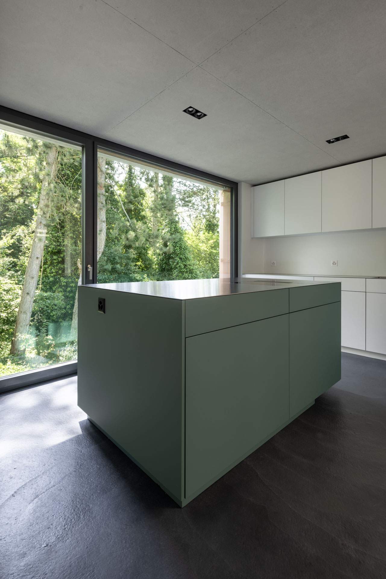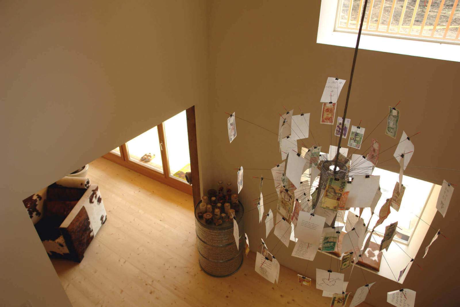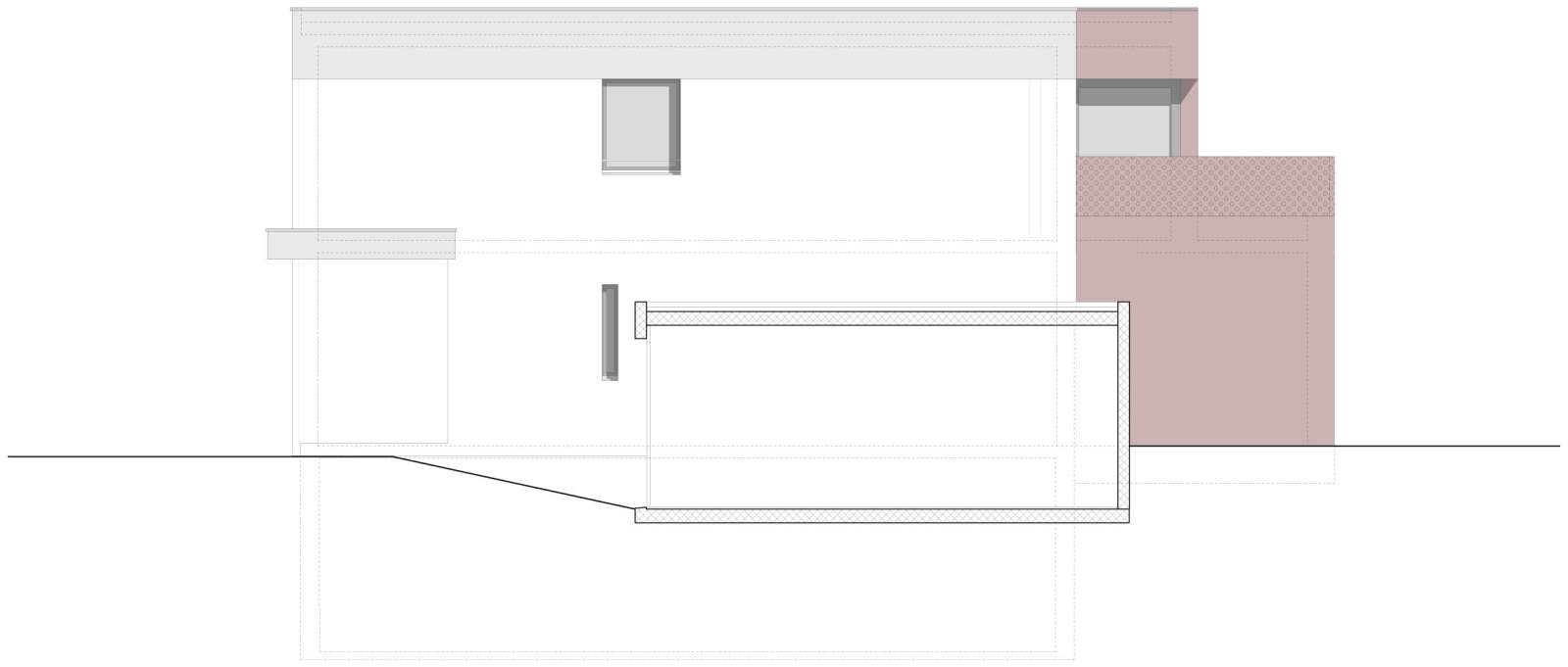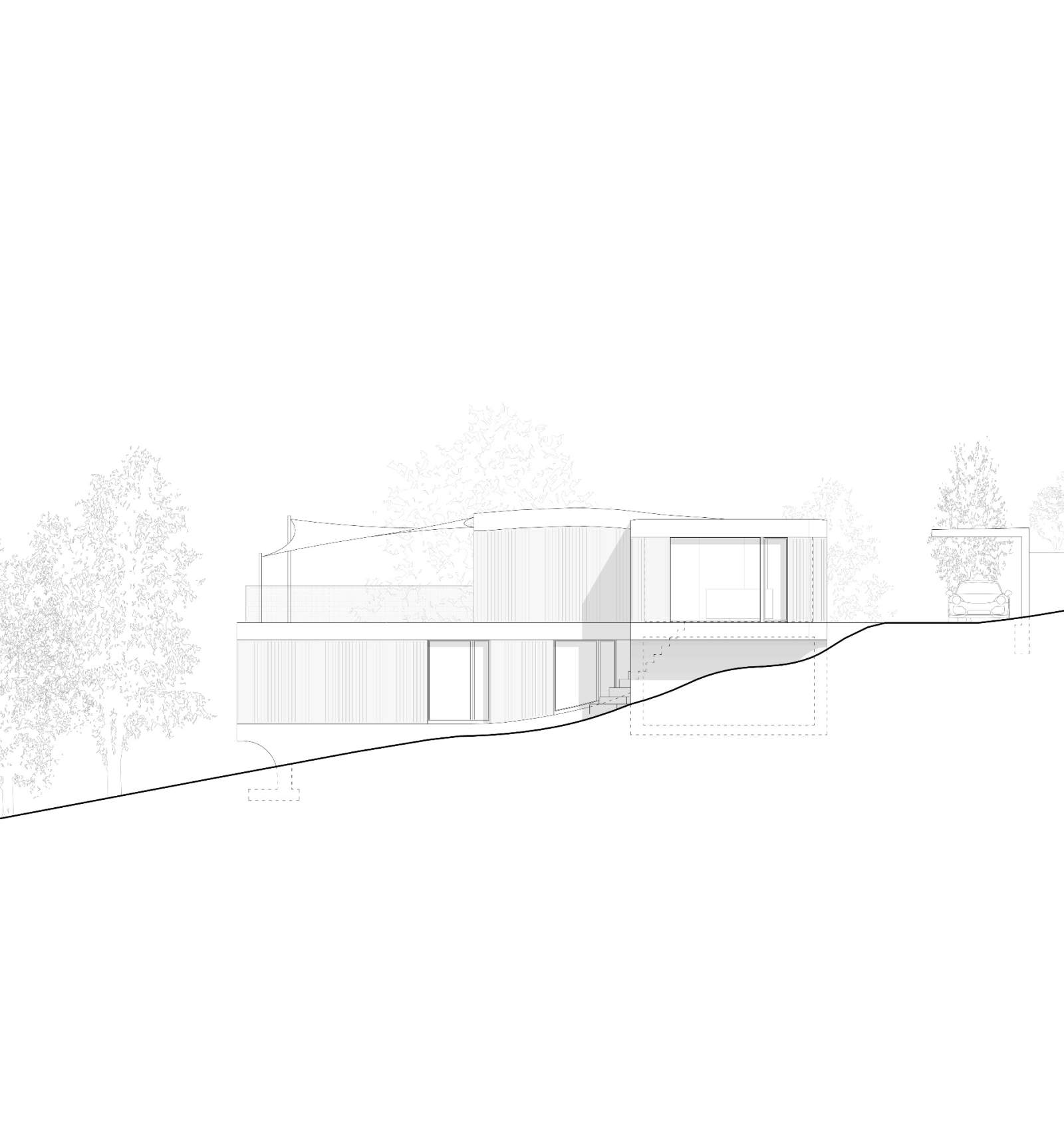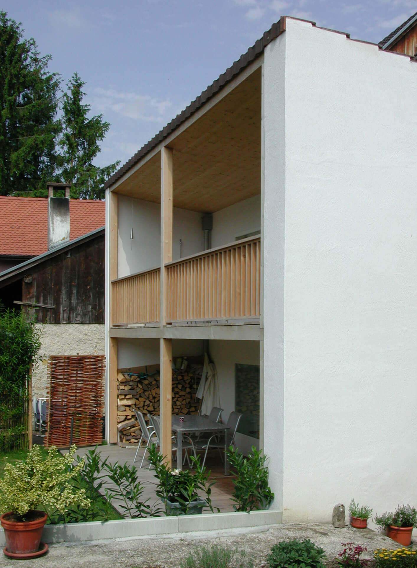 Die grössten Eingriffe erfährt das 1. Obergeschoss. Zugunsten einer grosszügigen Raumwirkung wird die Grundrissstruktur maximal aufgelöst und notwendige Wandabschnitte in raumbildende Körper integriert. Diese gliedern Küche, Wohn- und Arbeitsbereich. Das 2. Obergeschoss mit den Schlafräumen bleibt kleinteilig und erfährt bis auf die Öffnung zum Treppenraum kaum substantielle Eingriffe. Der ehemalige Estrich erhält zwei neue Dachfester und bietet den Kindern eine erweiterte Spielfläche. Um das ursprüngliche Fassadenbild zu erhalten, wurde lediglich das Dach saniert und alle Fenster ersetzt. Eine Photovoltaikanlage auf der südlichen Dachfläche ergänzt das energetische Konzept. Die haustechnischen Anlagen wurden modernisiert.