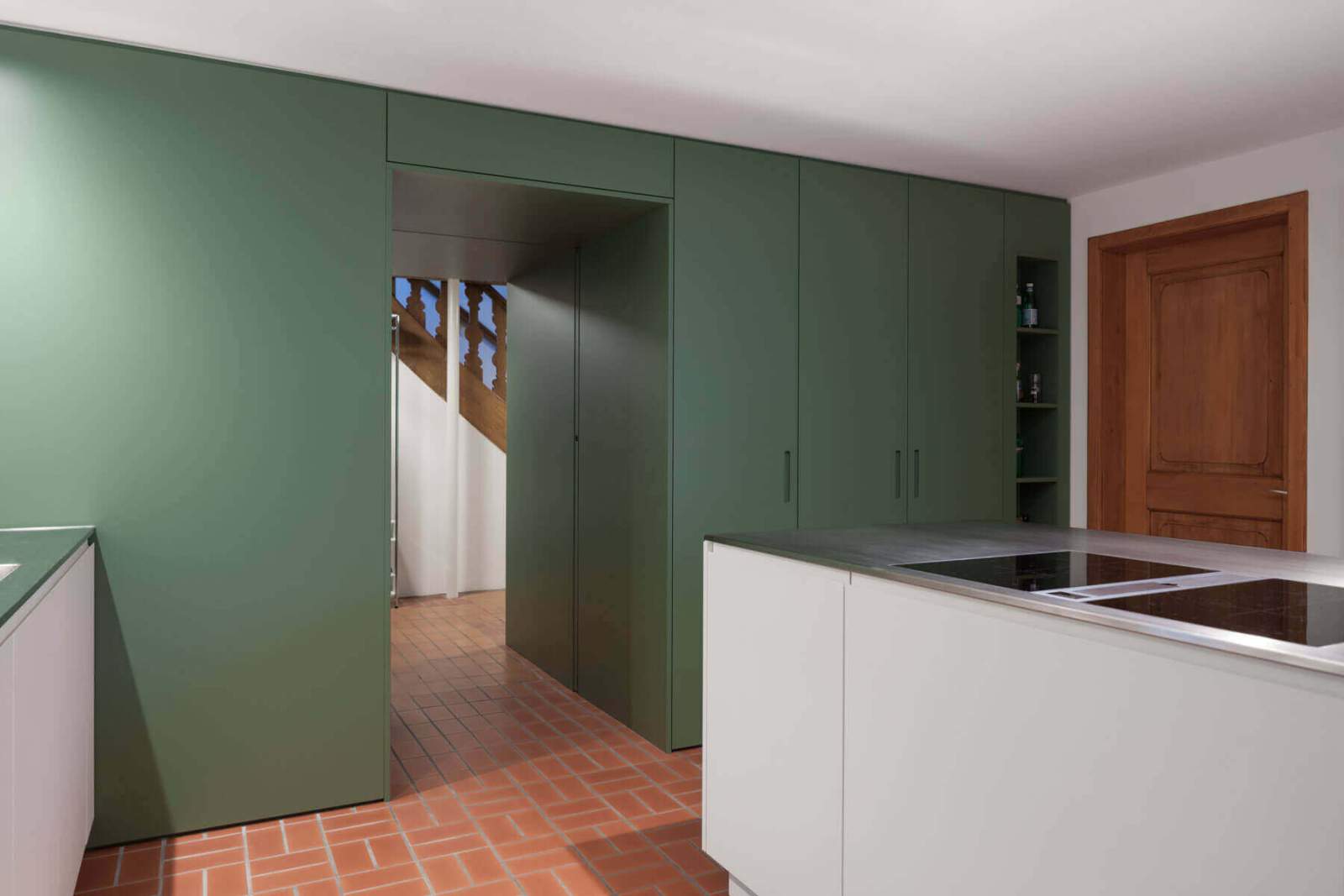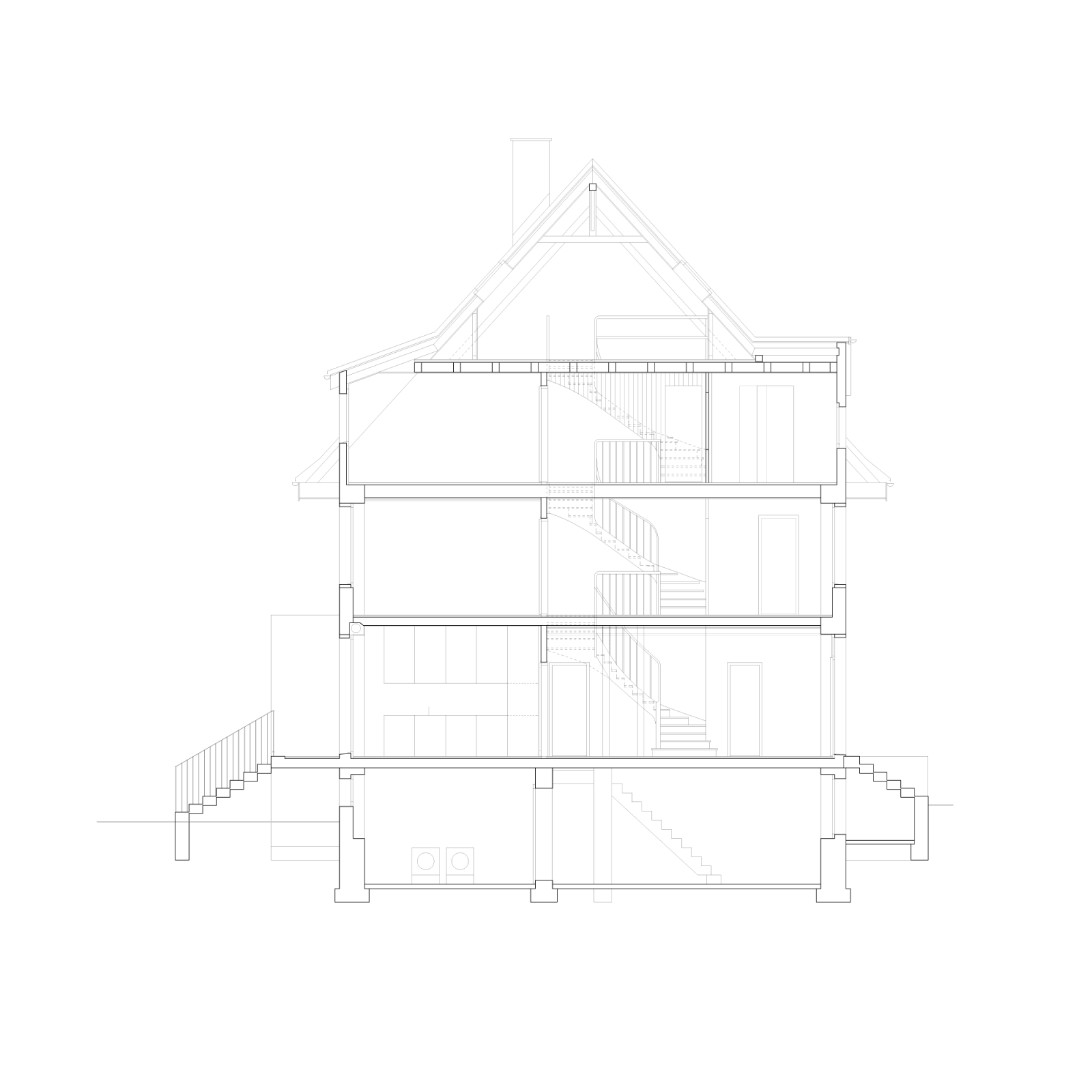 Im Basler Wohnquartier Bachletten, eingegliedert in eine Reihenhäuserzeile aus dem frühen 20. Jahrhundert, befindet sich das dreigeschossige Wohnhaus. Für die neuen Besitzer galt es, das ursprünglich von bis zu drei Parteien bewohnte Haus zu einer Wohneinheit zusammenzuführen. Der flexibel nutzbare Studiobereich im Erdgeschoss bildet eine Ergänzungsfläche zu dem Wohnbereich in den oberen Geschossen. Der für Altbauten typisch kleinteilige Grundriss wurde gezielt geöffnet und das innenliegende Treppenhaus in die Einheiten integriert.